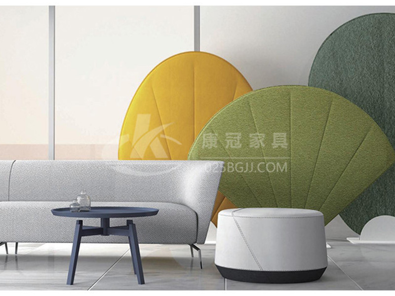 屏風(fēng)創(chuàng)意沙發(fā)的設(shè)計靈感來源于中國古代折扇、蒲扇和團(tuán)扇三種形式,現(xiàn)代辦公環(huán)境講究工作便利而又兼顧私密性,設(shè)計彰顯其功能。當(dāng)使用者需要它進(jìn)行獨立協(xié)作或獨立思考時,扇子屏風(fēng)可以作為沙發(fā)的一種聲學(xué)墻模塊,可減少無關(guān)的背景噪音,形成一個辦公與創(chuàng)造的空間。屏面上代表扇骨的壓痕,具象的表達(dá)了扇子的形象,為辦公生活帶來輕松寫意的氛圍。不僅如此,扇子屏風(fēng)不僅具有吸音功能,同時在空間中能起到軟性隔斷的作用,優(yōu)雅的將不同空間分割開來。
